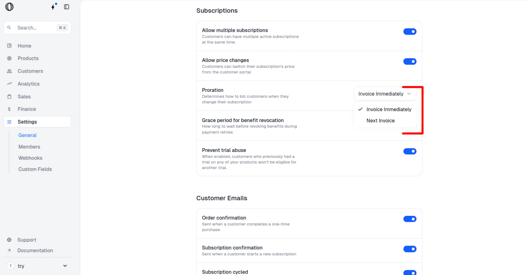 next_period update was previously scheduled and a new update is then made with invoice or prorate proration, the pending update is discarded and the new update is applied immediately instead.How to change the default proration setting using dashboard
